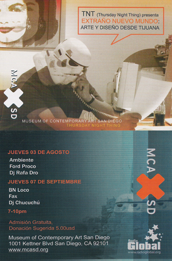 ![]() Upgrade! Tijuana Ford Proco MP1000 Eduardo Navas 29 de Agosto, 6:00pm Centro Cultural Tijuana |