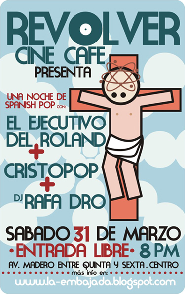 ![]() dj rafa dro (selector de frecuencias) cristo pop (versionandose temas de la decima victima, pegamoides, paralisis permanente) el ejecutivo del roland (tocando temas de el bello sergio, fangoria, le buena vida, los fresones rebeldes y lemans) el plus del sr. pillado con sus versiones a family y los planetas. este sabado 31 de marzo en cafe revolver calle madero entre 5ta y 6ta. es free y empezamos a las 9.30 pm |
