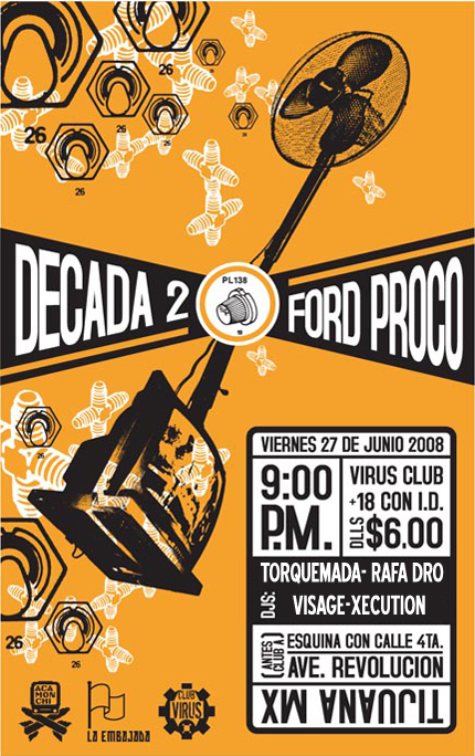 ![]() DECADA 2 - FORD PROCO Djs Rafa Dro, Torquemada, Visage, Xecution @VIRUS CLUB Ave. Revolución esq. Calle 4ta Tijuana, México |