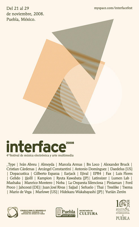 ![]() 22 de Noviembre FESTIVAL INTERFACE Audio: Gélido, Ford Proco, Lumen lab, Sajjad, Bn Loco Video: Txema, Thai, Piniaman 6PM/Museo Erasto Cortez Publa, Centro Histórico |