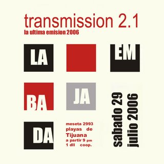 ![]() Letters From Readers "Dot Dash" Es un Post everyhting generado a base de cintas, improvisaciones, electrónica, guitarras, con prominentes ritmos y bajos. Es un proyecto de Mexicali creado por Gerardo Montoya, en directo se hace acompañar de Rubén Tamayo (Fax), Rodo Ibarra (Maniqui Lazer) y Valentín Torres (Vampire Slayer). Música instrumental que no sigue reglas y que muestra un sonido desafiante dentro del panorama under en México. Un match de downtempo y vértigo rítmico, cambiante como rafagas de viento en un tormenta de arena. |